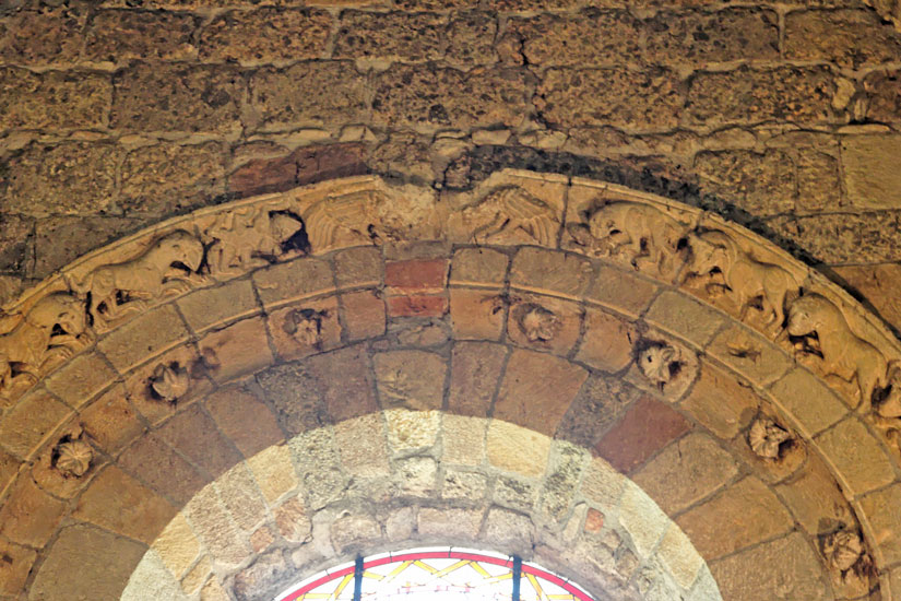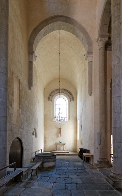 Vestige de l'époque carolingienne, cette chapelle fait partie d'un long transept. De cette époque elle a conservé le décor de la fenêtre visible ci-dessous. A gauche, se trouve la courte nef surélevée.