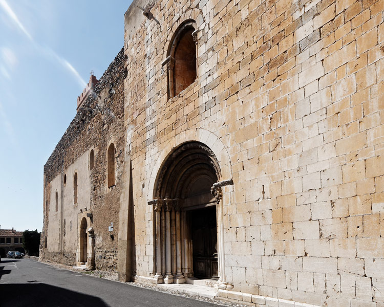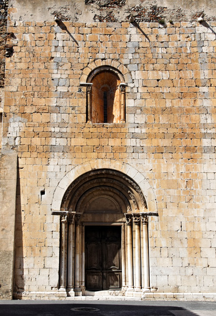Le portail et la fenêtre représentent un bel ensemble sculpté. Le grand portail en marbre blanc était destiné aux fidèles. Les six colonnes aux chapiteaux sculptés reçoivent trois voussures moulurées encadrant un tympan nu. Les éléments sculptés sont très proches du style de ceux de Serrabona et pourraient dater des environs du milieu du XIIème siècle.