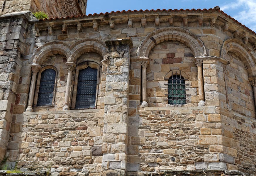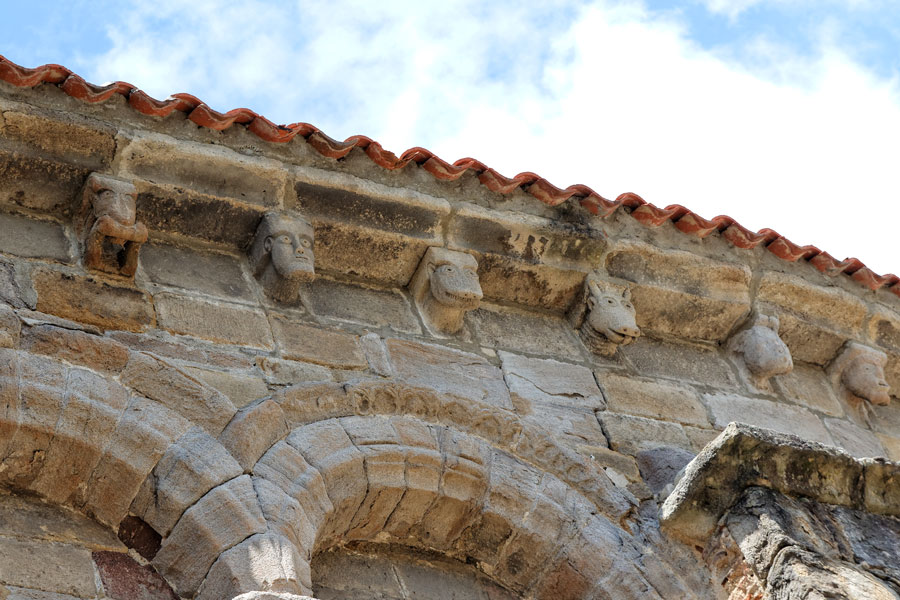 Les modillons sont constitués de têtes humaines et de têtes d'animaux