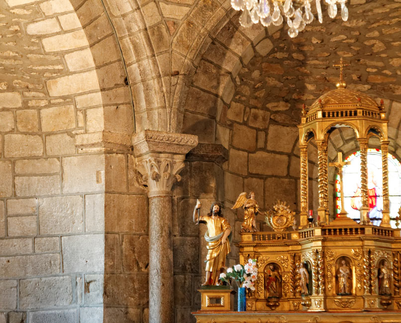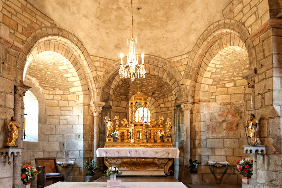 L'autel d'origine romane supporte une décoration entiérement dorée.