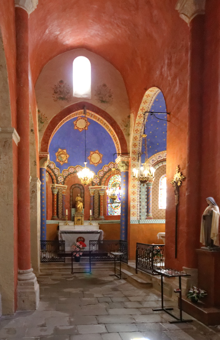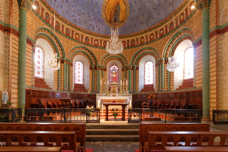 Le choeur est entièrement peint, comme le sont les chapiteaux aux sommets des colonnettes. Il est éclairé par 6 fenêtres.