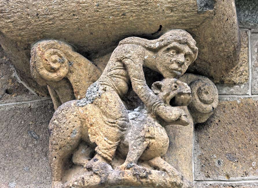 Plusieurs interprétations existent pour cette scène qui pourrait représenter Daniel, Gilgamesh ou un épisode avec David.