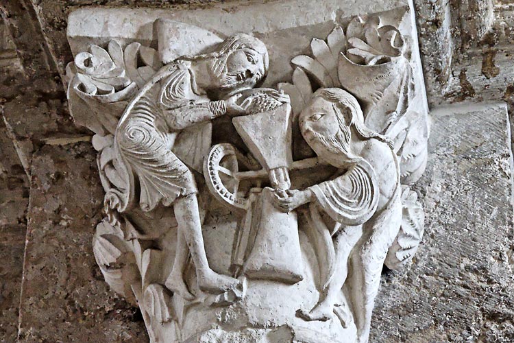 C'est un des chapiteaux les plus célèbres de l'église. Deux mondes se rencontrent