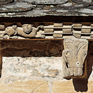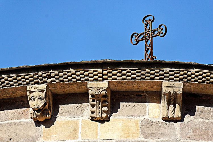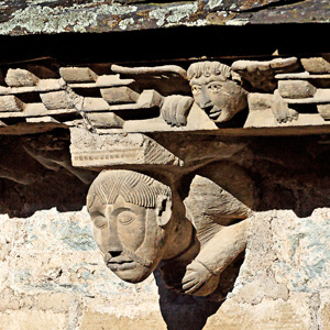 Les modillons sculptés courent tout autour des toits, formant un petit peuple de figures humaines, d'animaux et d'anges.