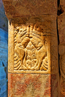 | La façade du côté de l'autel est moins richement sculptée. De ce côté ci, se tenaient les moines et les fidèles se tenaient de l'autre côté, avec les sculptures devant les yeux pour leur édification. |
