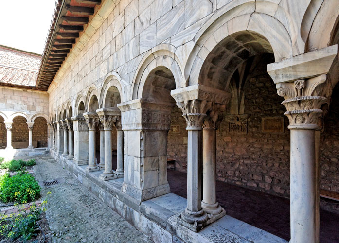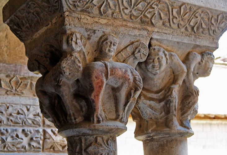 La galerie nord : C'est une reproduction assez mauvaise des oeuvres romanes, avec quelques ajouts gothiques, comme les grandes feuilles réparties sur deux étages. "..le métier est au-dessous du médiocre" (Marcel Durliat, 1958). |