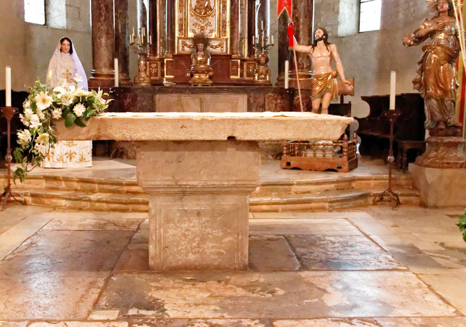 Cette table d'autel est une pièce faisant partie d'une série de tables du Xème ou du XIème siècle creusées de lobes.. |