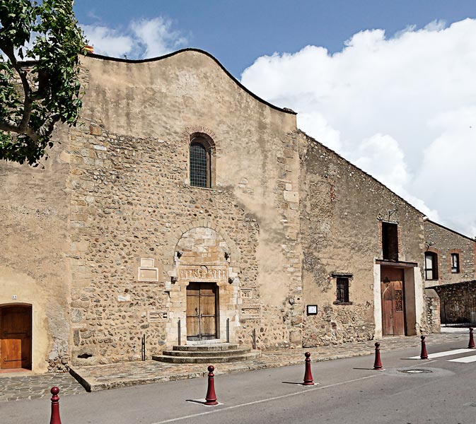 Cette abbaye bénédictine a été fondée vers l'an 800 par le moine Setimir à un endroit où jaillissent de multiples sources venant de la chaîne des Albères. Détruite au IXème siècle par les Normands, elle a été reconstruite et a connu un développement continu avec le voûtement au XIIème siècle et la construction du cloître au XIIIème siècle. La facade de l'église est insérée entre deux bâtiments, avec à gauche l'entrée du cloître. L'élément remarquable en est le linteau