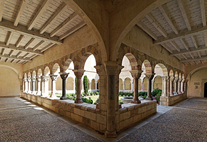 Ce cloître est remarquable à plus d'un titre. Tout d'abord, c'est une des dernières expressions de la sculpture romane en Roussillon, construit entre 1270 et 1280. De plus, il a eu une histoire quasiment rocambolesque. Vendu à la Révolution comme bien national, il fut partagé entre de nombreux propriétaires qui l' aménagèrent suivant leurs besoins (arcades bouchées, caves, entrepôts et même une maison d'habitation). En 1924, l'antiquaire (et faussaire) Paul Gouvert en acheta