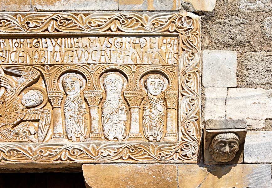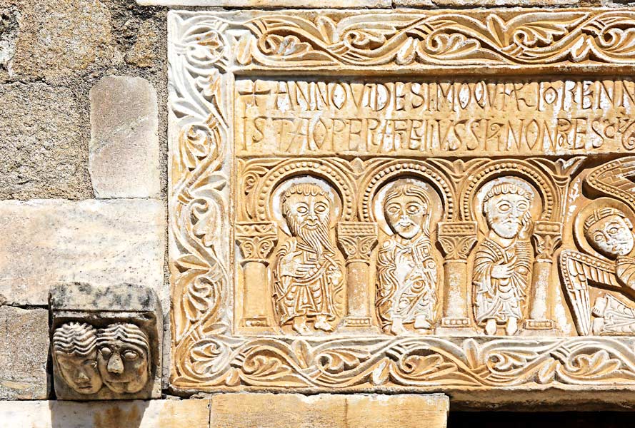 Le relief est en méplat, les plis des habits et les traits du visage sont plus gravés que sculptés. |