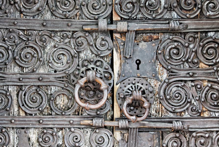 Superbe porte à ferrures du XIIème siècle, une des plus belles du pays avec deux verrous.