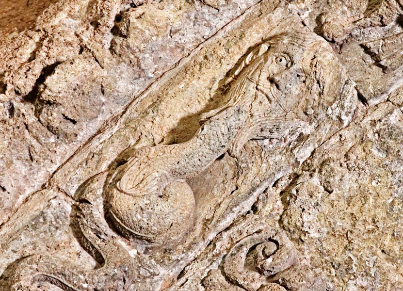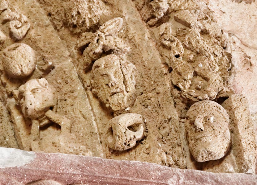 Têtes, squelettes et monstres sur les voussures externes.
