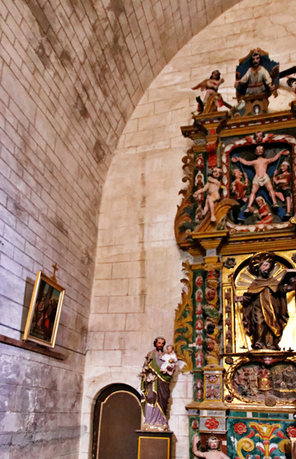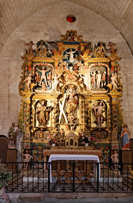La nef unique est voûtée en berceau brisé continu. Un grand retable représentant Saint-André et sa croix masque les absidioles dont on peut apercevoir une partie des contours.