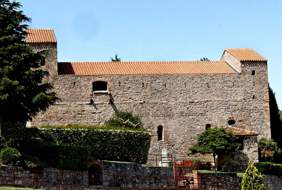 Deux campagnes de construction se succédèrent, révélées par les murs en petit et grand appareil. La première phase s'inscrit dans un rectangle de 27 mètres sur 10 mètres jusqu'à son couvrement. La seconde consiste en une surélévation des murs gouttereaux où s'alignent des archères. Deux massifs, à l'est et à l'ouest, commandent le chemin de ronde. Ce dispositif défensif était complété par la baie géminée (visible sur la photo) qui comportait une bretéche (petit avant-corps rectangulaire ou à pans coupés, plaqué en encorbellement sur le mur fortifié de l' église ), reposant sur des supports (corbeaux) toujours en place et permettant de défendre l'entrée.