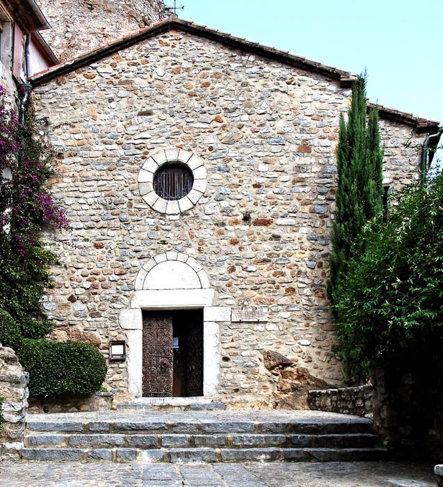 Cette église jouxte les ruines du chateau. De l'église romane originelle, il ne reste que la nef voutée et le portail occidental en granit, bien appareillé.