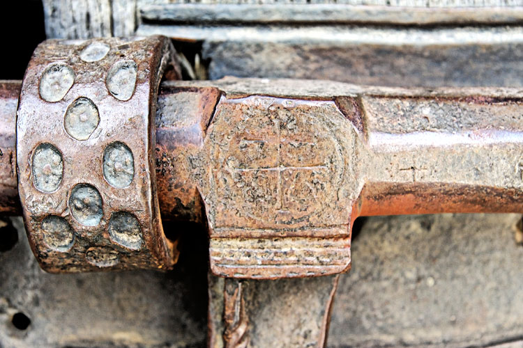 Sur le verrou, on peut lire : " Ber faber velim me fecit", Ber le forgeron m'a fait volontiers.