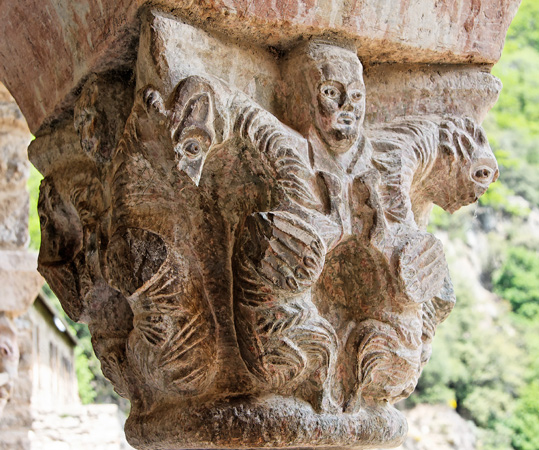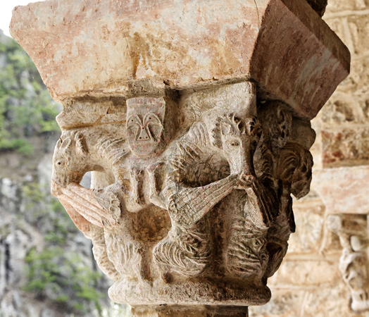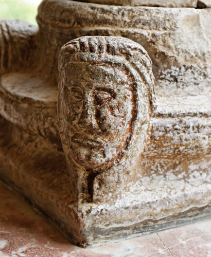 Sur cette face, une tête humaine au milieu des chevaux. |