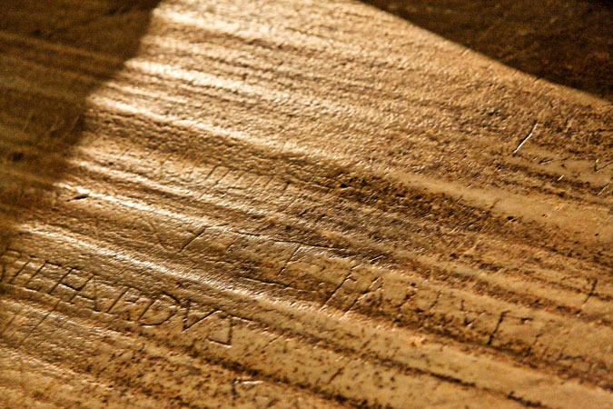 Sur la table d'autel, on peut voir les signatures des clercs et fidéles qui avaient coutume d'y inscrire leur nom. |