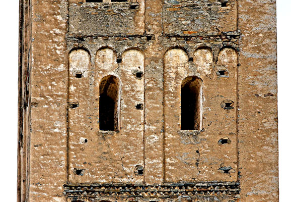 Les étages sont marqués par une rangée de petites arcatures dites lombardes. |