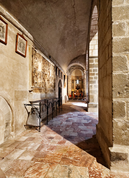 L'église est de plan basilical à 3 vaisseaux séparés par de grandes arcades sur piliers rectangulaires. Le vaisseau central fut couvert d'un berceau brisé continu et les collatéraux d'un demi-berceau. Sur le transept s'ouvrent 5 absides semi-circulaires. Seule l'abside centrale fait saillie, les autres étant prises dans l'épaisseur du mur. |
